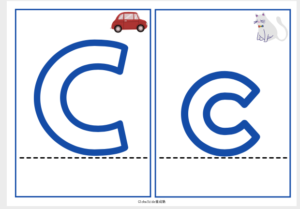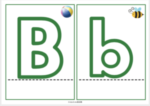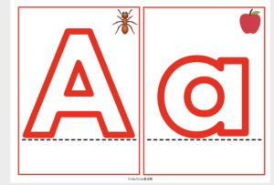 それぞれの文字は大文字と小文字を用意しています。そしてその文字から始まる言葉がそれぞれ右側の角に掲載しています。