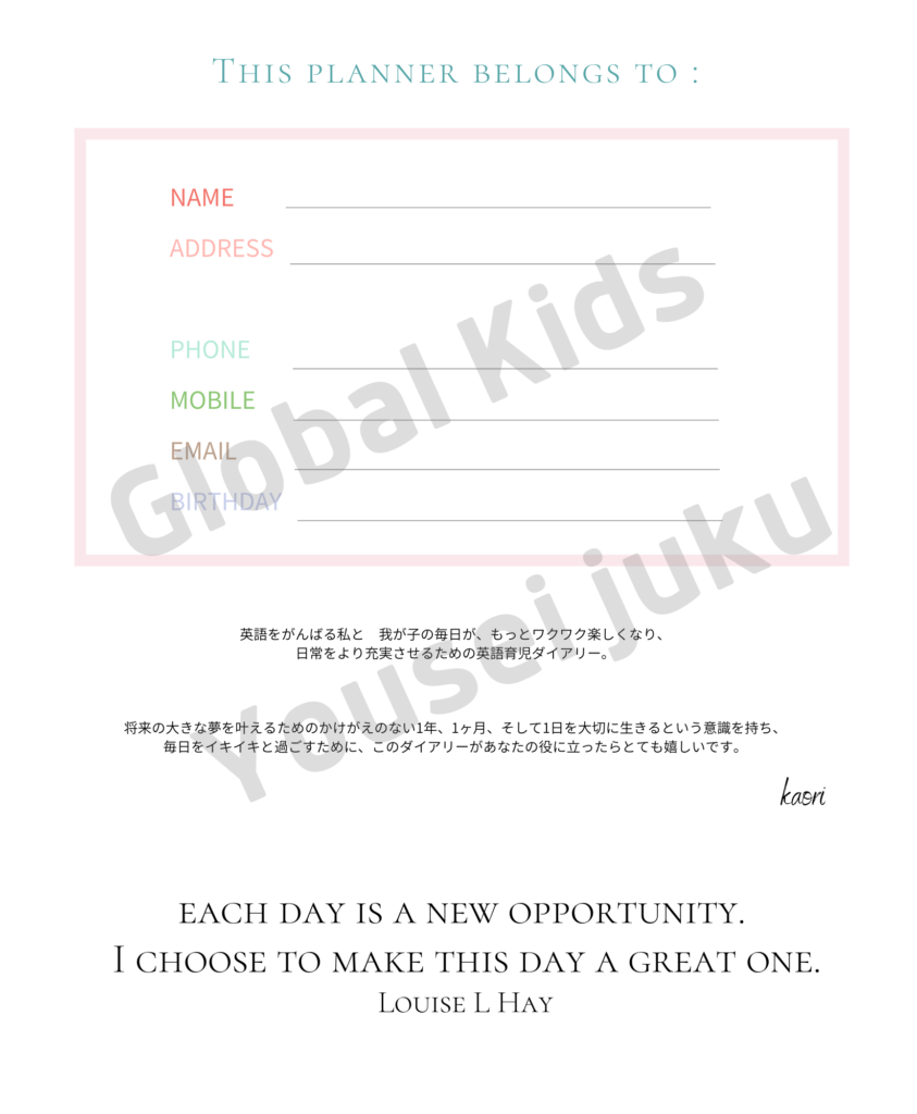 そのようなことからも、私自身もバイリンガル育児を頑張っているあなたと一緒に夢を叶えるダイアリーを付け続けたい!