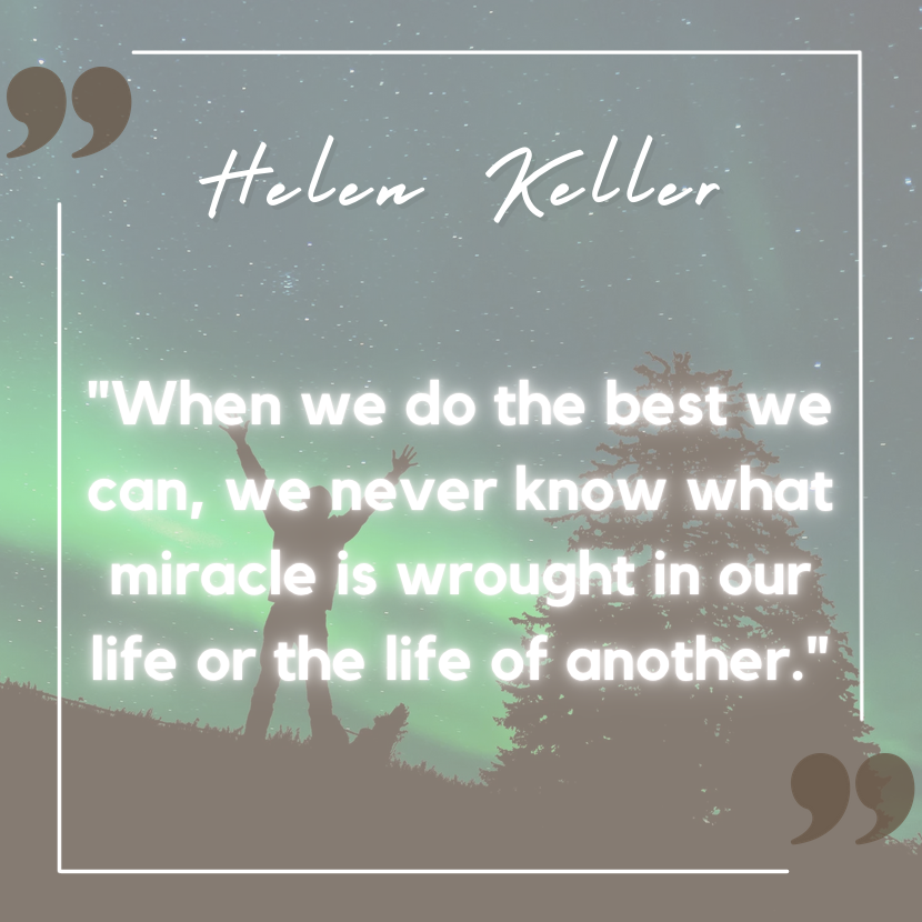 ヘレンケラーが言ったとされるこの言葉、刺さりますね。目が見えない、耳が聞こえない、話すことが困難であった彼女が、一生のうちにどんなミラクルを起こしてきたでしょう?