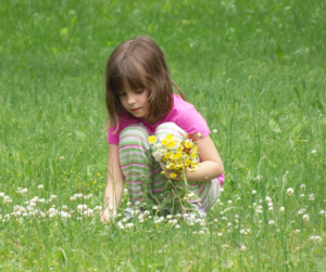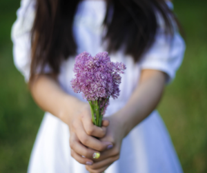 道すがら摘んだ花を手にいっぱい抱えて