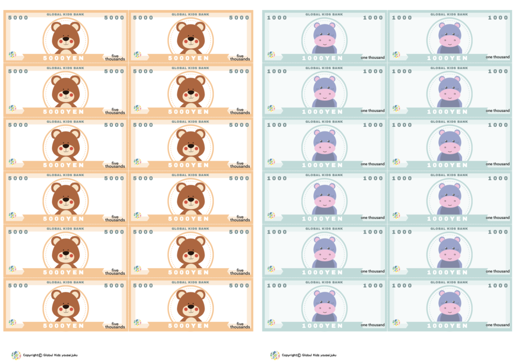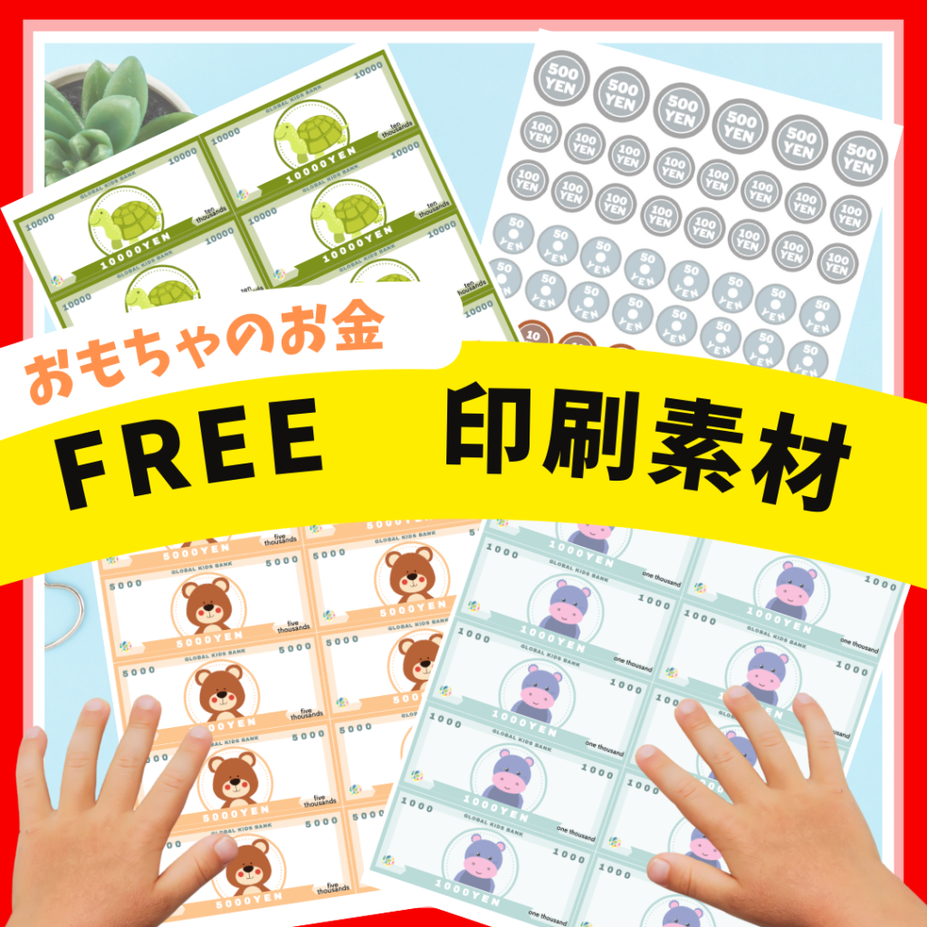 先日、グローバルキッズ養成塾のオリジナル、無料ダウンロードできるお金を作成し、ショップで配布スタートしました。(ただいま無料配布中!)
