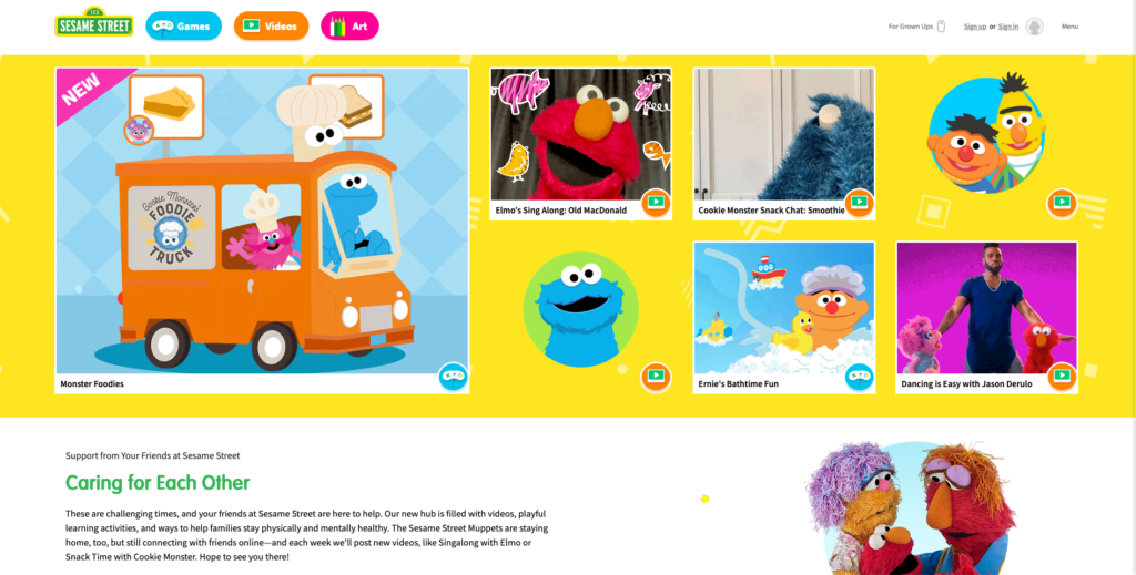 sesame streetのウェブサイトには、歌以外にも多くのコンテンツが用意されています。
