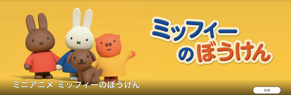 | 1歳〜 | 友人関係、動物、色や形、数字の概念など | ミッフィー/メラニー/ポピーピッグ/ファザー&マミーバニー そのほか |