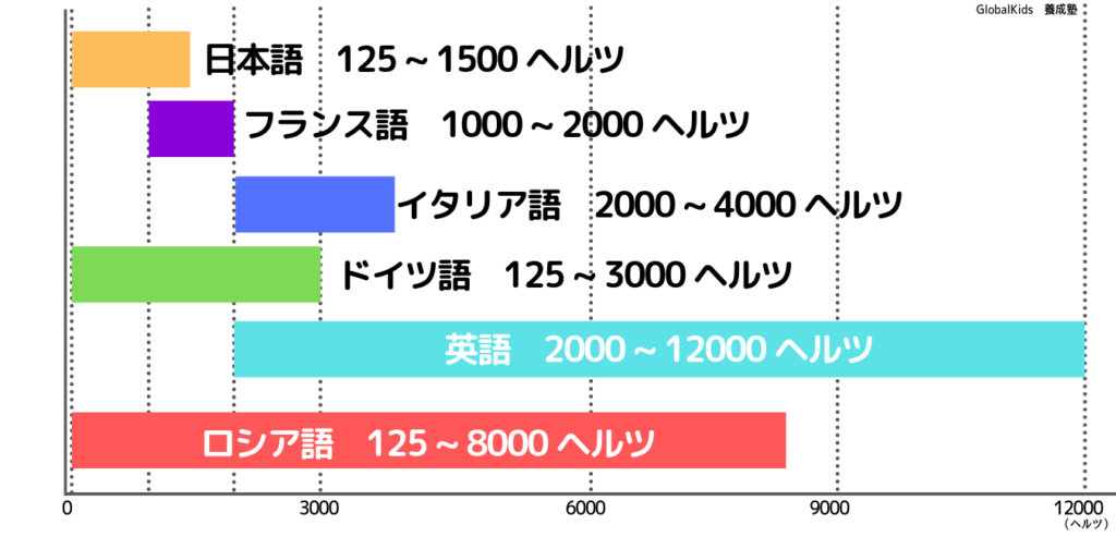 でも書きましたが、英語と日本語では 周波数帯が全く被らない、つまり“音“が共通していません。